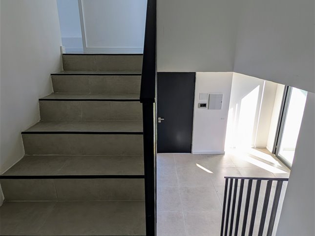 Planta Baja: Living Comedor con pisos de porcelanato, cocina integrada con mesada de cuarzo, placares melaminicos bajo y sobre mesada, anafe y Horno empotrado. Baño Social y salida desde el comedor al patio de uso exclusivo con parrillero.