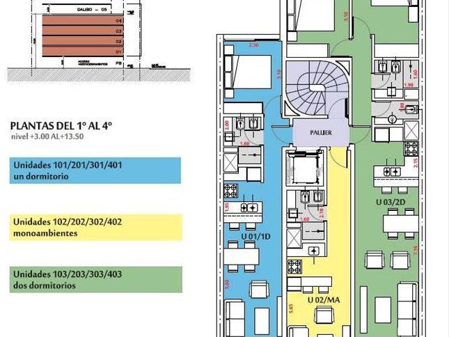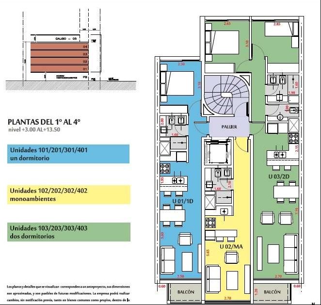 * Las superficies de los apartamentos incluyen muros divisorios hasta su eje, ductos, terrazas, balcones, prorrateo de área común, circulación vertical exclusivamente de planta.