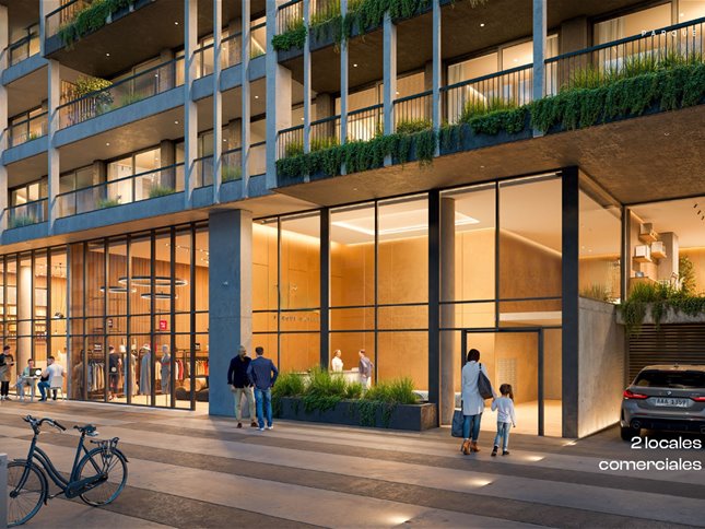 El desarrollo está conformado por 108 apartamentos, cocheras techadas en planta baja y subsuelo, 2 locales comerciales y una propuesta de amenities diseñada para el confort diario: SUM con parrillero cerrado, dos parrilleros abiertos, barbacoa, gimnasio interior y exterior, área de cowork, laundry, playroom, sala kinder, bicicletero y un circuito aeróbico de 80 metros.